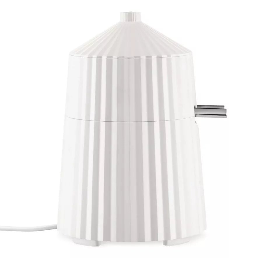 De Plissé juicer citruspers van Alessi, ontworpen door Michele de Lucchi, heeft een doorsnede van 18,5 centimeter en is 28 centimeter hoog. De juicer heeft een basis van roestvrijstaal en een behuizing van BPA-vrij thermoplastisch materiaal. Plissé heeft een maximaal vermogen van 85W. De geïntegreerde kabel is 120 centimeter lang. De juicer is verkrijgbaar in verschillende kleuren en weegt 2,5 kilogram. De afneembare pers en de deksel zijn vaatwasser bestendig. De tuit kan in twee standen worden gezet, omhoog zodat het sinaasappelsap er niet uitloopt en naar beneden om je glas te vullen.