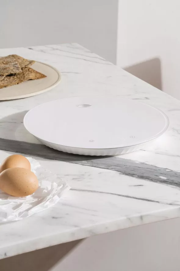 De Plissé weegschaal is ontworpen door Michele De Lucchi. De weegschaal heeft een diameter van 27,5 centimeter en een hoogte van 2,8 centimeter. De weegschaal is gemaakt van thermoplastic hars en verhard glas. De weegschaal is tot op de gram nauwkeurig en is verkrijgbaar in verschillende kleurvariaties.