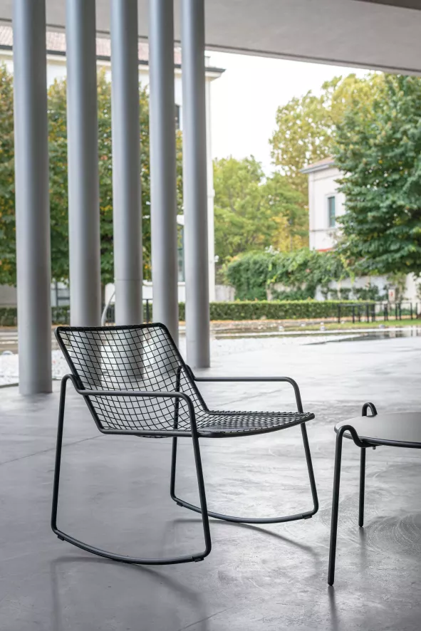 De Rio R50 schommelstoel van Emu is ontworpen door Emanuel Gargano en Anton Cristell.