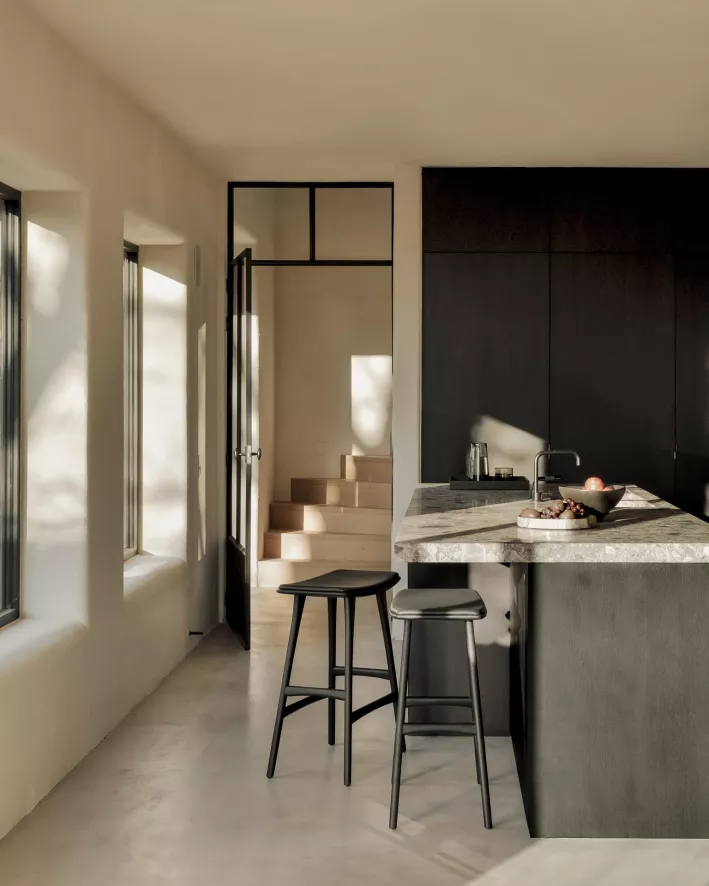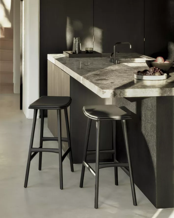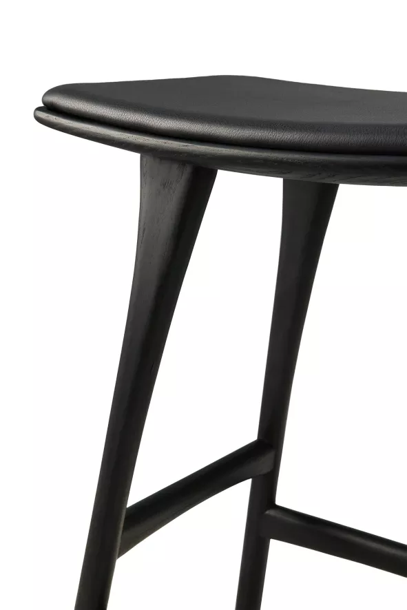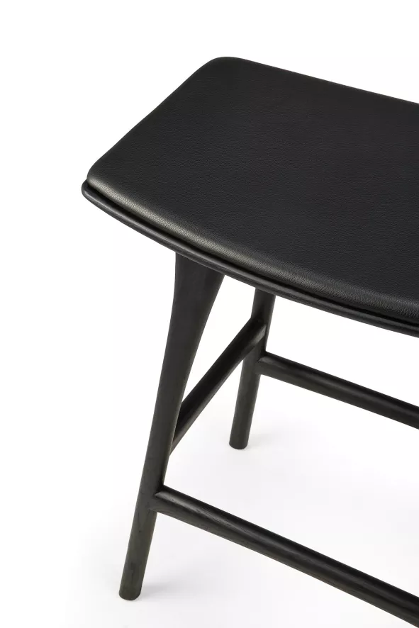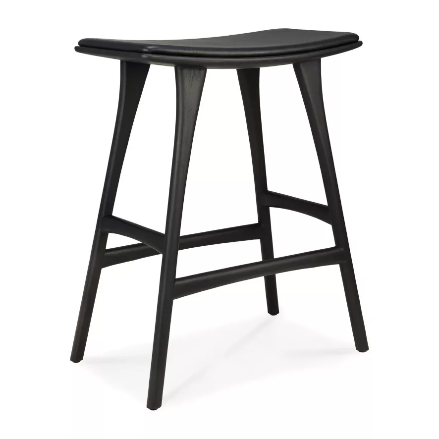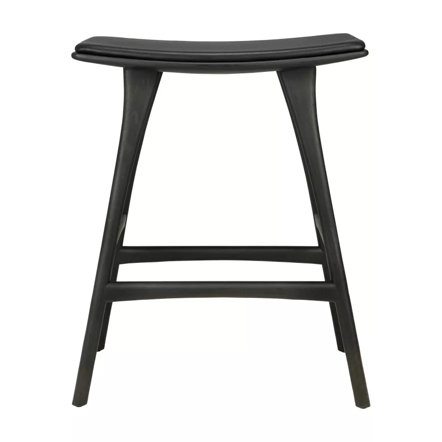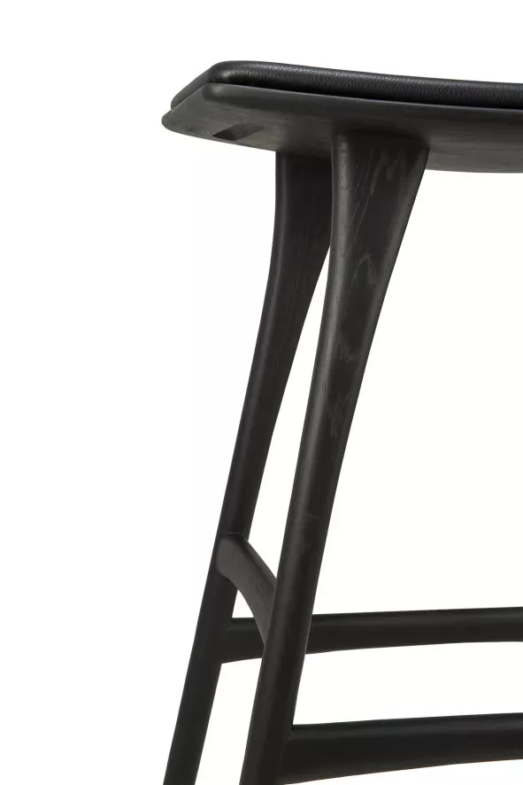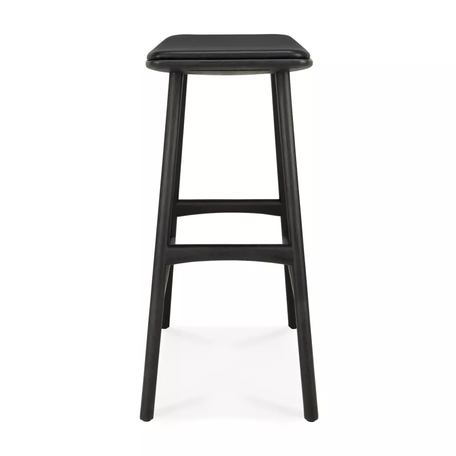 Ethnicraft Osso Barkruk 67 Gestoffeerd Zwart Eiken Zwart Leer