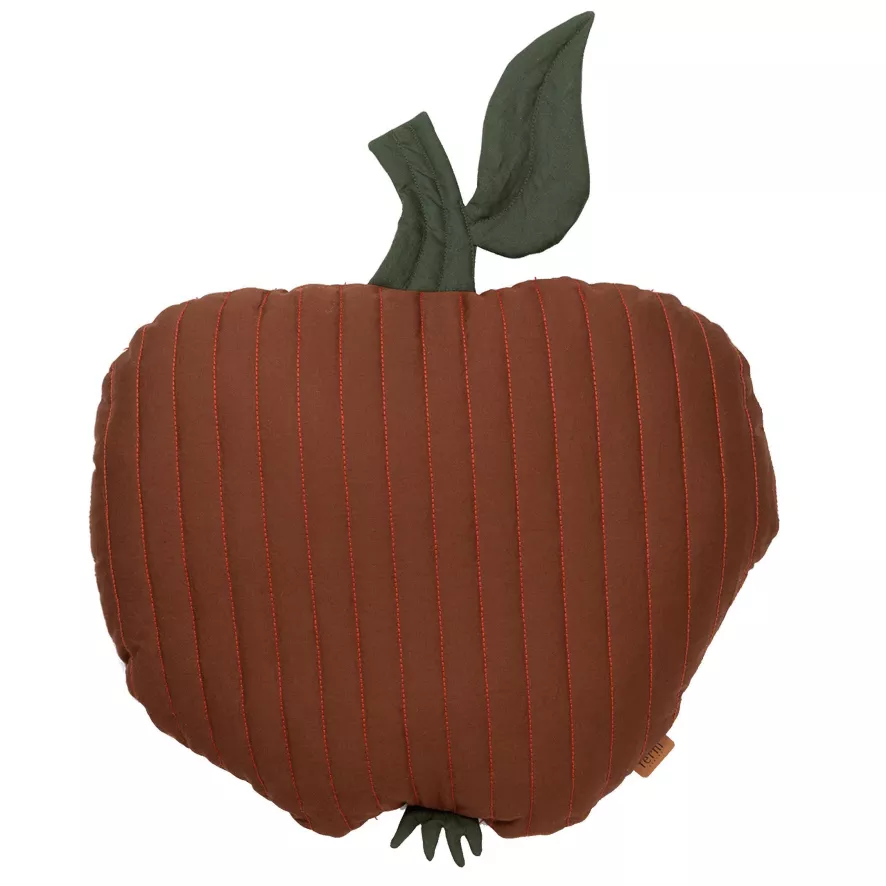 Het Apple Quilted kussen van Ferm Living heeft een breedte 45 centimeter, een hoogte van 49 centimeter en een diepte van 15 centimeter. Het kussen is bekleed met een 100% GOTS-gecertificeerd katoenen stof en gevuld met 100% gerecycled polyester. Ferm Living raadt aan het kussentje op een zacht wasje op maximaal 30°C graden te wassen. Apple is ook verkrijgbaar als Pear.