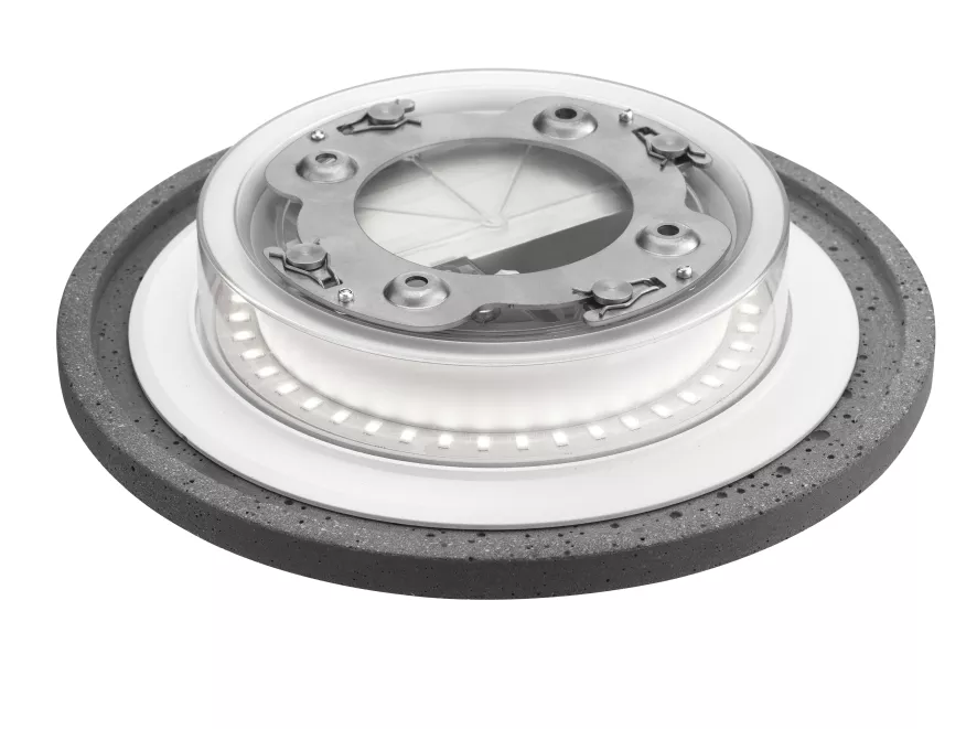 Camouflage 240 buitenlamp LED 3000K van Flos komt in 9 verschillende uitvoeringen: primer, wit, grijs, bruin, zwart, antraciet, basaltsteen, crema d’orcia steen en in cement. De lamp heeft een diameter van 24 centimeter en een diepte van 4,2 centimeter (bij basalt, crema d’orcia en cement heeft hij een diepte van 4,8 centimeter). Er zit een LED lamp in van 12 Watt, 1488 lumen en 3000 Kelvin. Deze lamp heeft een geïntegreerde driver. Verder heeft de lamp een CRI index van 80. Hij weegt maximaal (afhankelijk van de uitvoering die je kiest) 1,5 kilo.