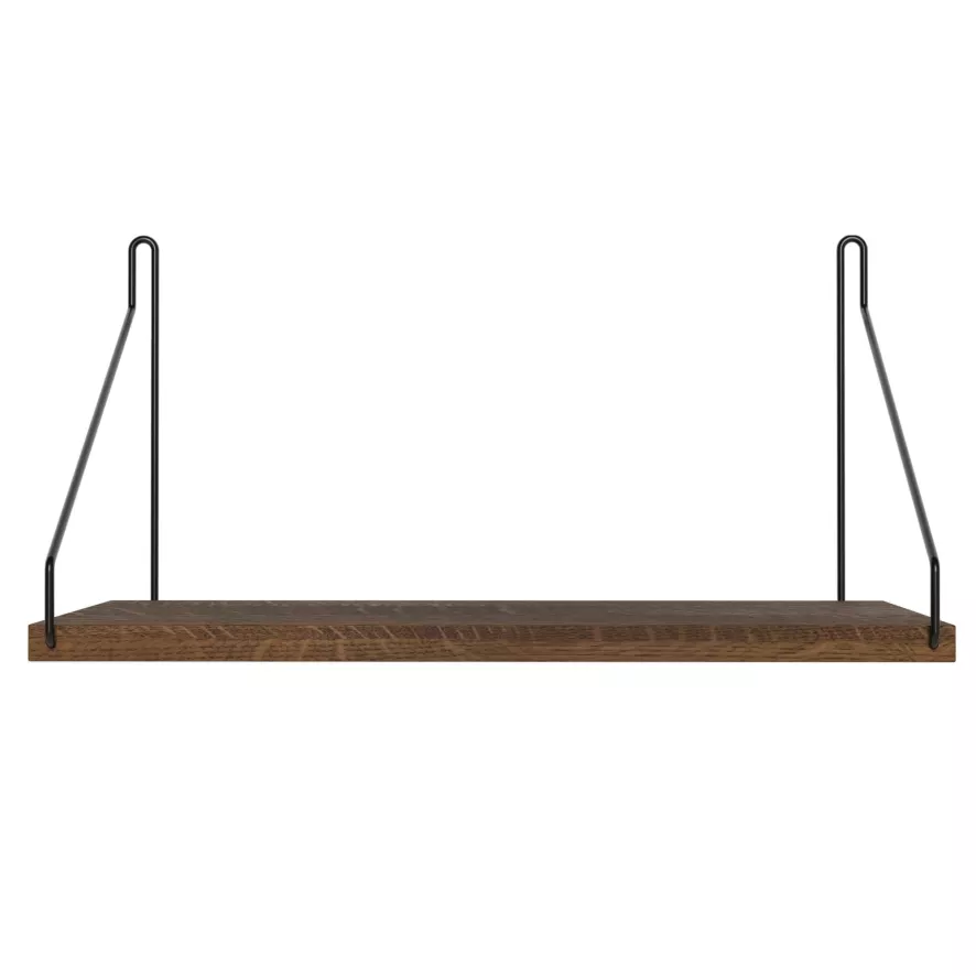De Shelf wandplank 40 cm van Frama is gemaakt van eikenhout (tweemaal geolied). De ophangbeugels zijn verkrijgbaar in het zwart, messing of koper. Deze plank heeft een breedte van 40 centimeter, een diepte van 20 centimeter en een hoogte van 20 centimeter. De plank is 2 centimeter dik.