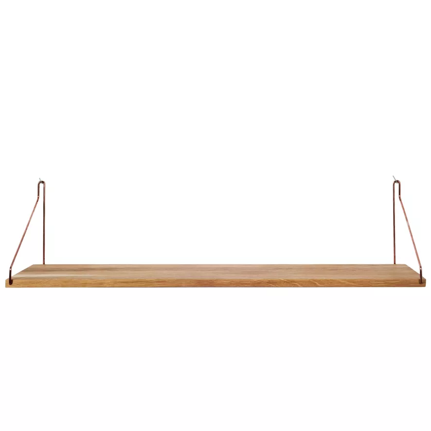 De Shelf wandplank 80 cm van Frama is gemaakt van naturel geolied eiken, witgeolied eiken of donker eiken. De ophangbeugels zijn verkrijgbaar in diverse kleuren. Deze plank heeft een breedte van 80 centimeter, een diepte van 20 centimeter en een hoogte van 20 centimeter. De plank is 2 centimeter dik.