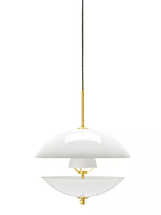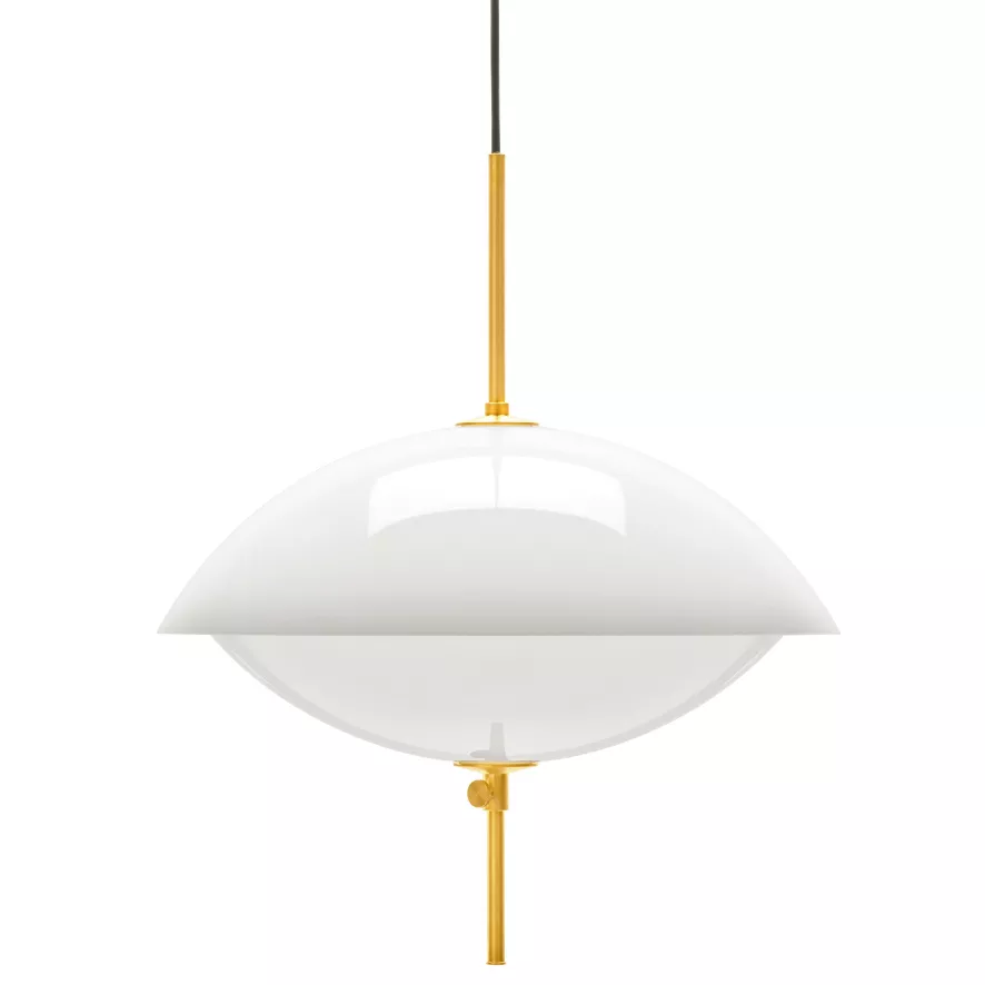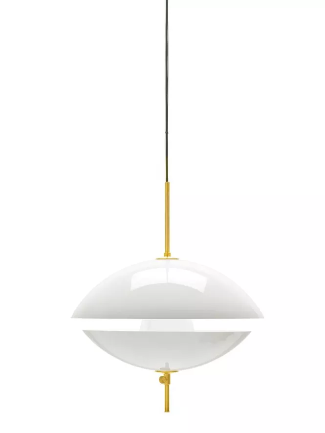 De Clam hanglamp 55cm van Fritz Hansen heeft een diameter van 55 centimeter en een hoogte van 54 centimeter. Deze hanglamp is gemaakt van mond geblazen opaalglas en geborsteld messing en is voorzien van een zwarte, stoffen kabel van 6 meter lang. De benodigde lichtbron voor deze hanglamp wordt niet meegeleverd. Voor deze hanglamp heb je een lichtbron met een E27 fitting van maximaal 60 Watt nodig. Deze hanglamp heeft een IP-waarde van 20 en mag alleen binnenshuis gebruikt worden. De Clam hanglamp 55cm van Fritz Hansen heeft een gewicht van 9 kilogram en is ook in een kleinere uitvoering verkrijgbaar.
