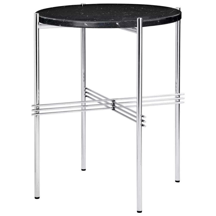 De TS bijzettafel 40 polished steel van Gubi heeft een diameter van 40 centimeter en een hoogte van 51 centimeter. Deze bijzettafel heeft een onderstel van gepolijst staal en een tafelblad van gesteente. Voor deze bijzettafel kun je uit verschillende marmer en-travertijnsteensoorten kiezen. De tafel heeft een gewicht van 6 kilogram en is alleen geschikt voor gebruik binnenshuis. De TS bijzettafel 40 polished steel van Gubi komt uit de gelijknamige TS-collectie en is in verschillende uitvoeringen verkrijgbaar.