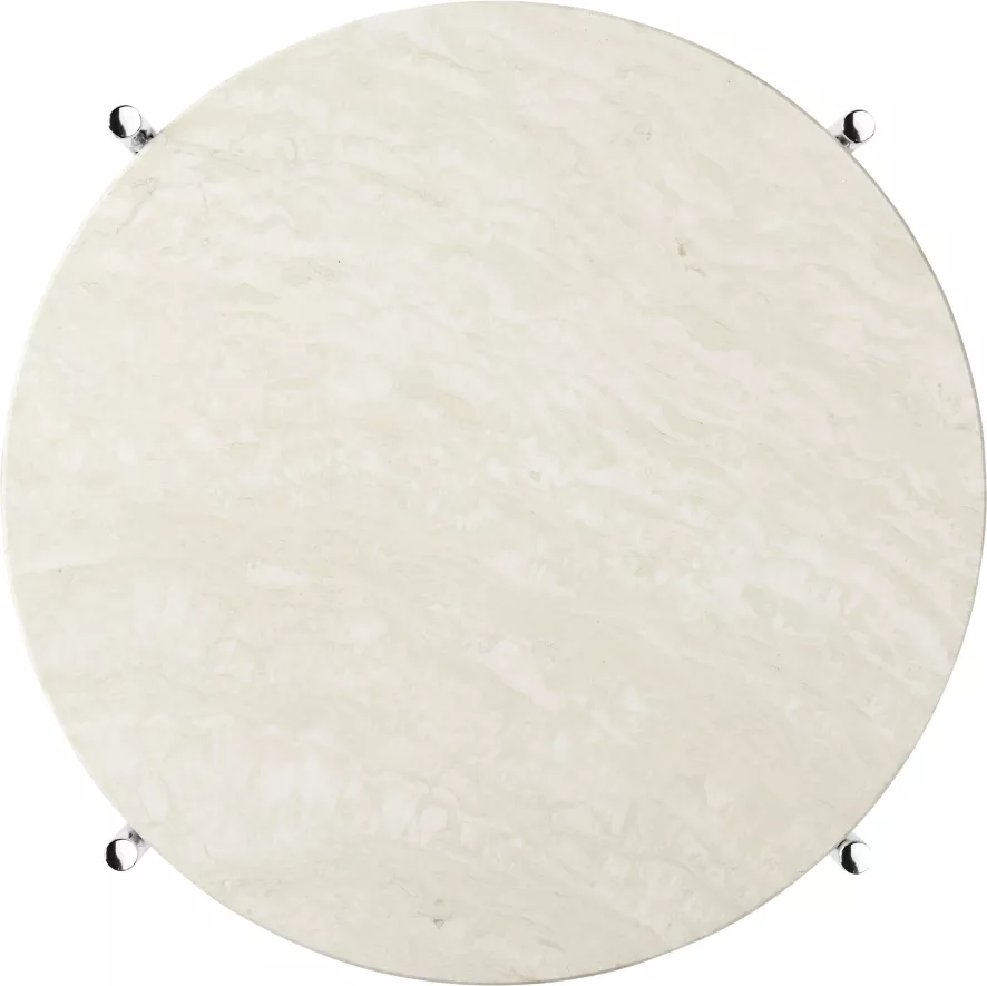 Gubi TS Bijzettafel 40 Polished Steel Warm Taupe Travertine