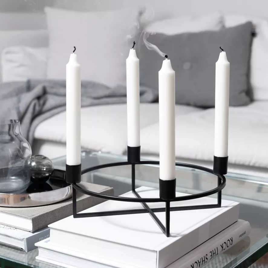 De Yunic 4flames kandelaar rond is ontworpen door Johannes Lindner.
