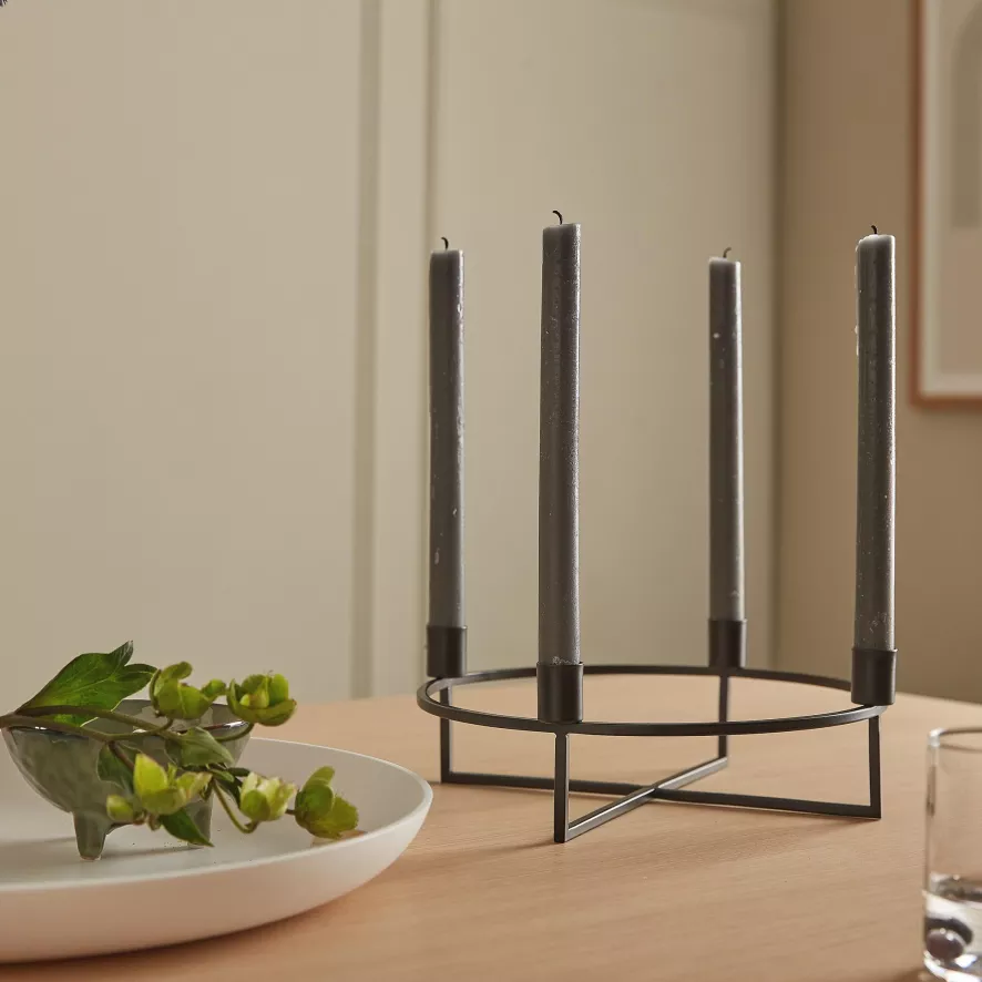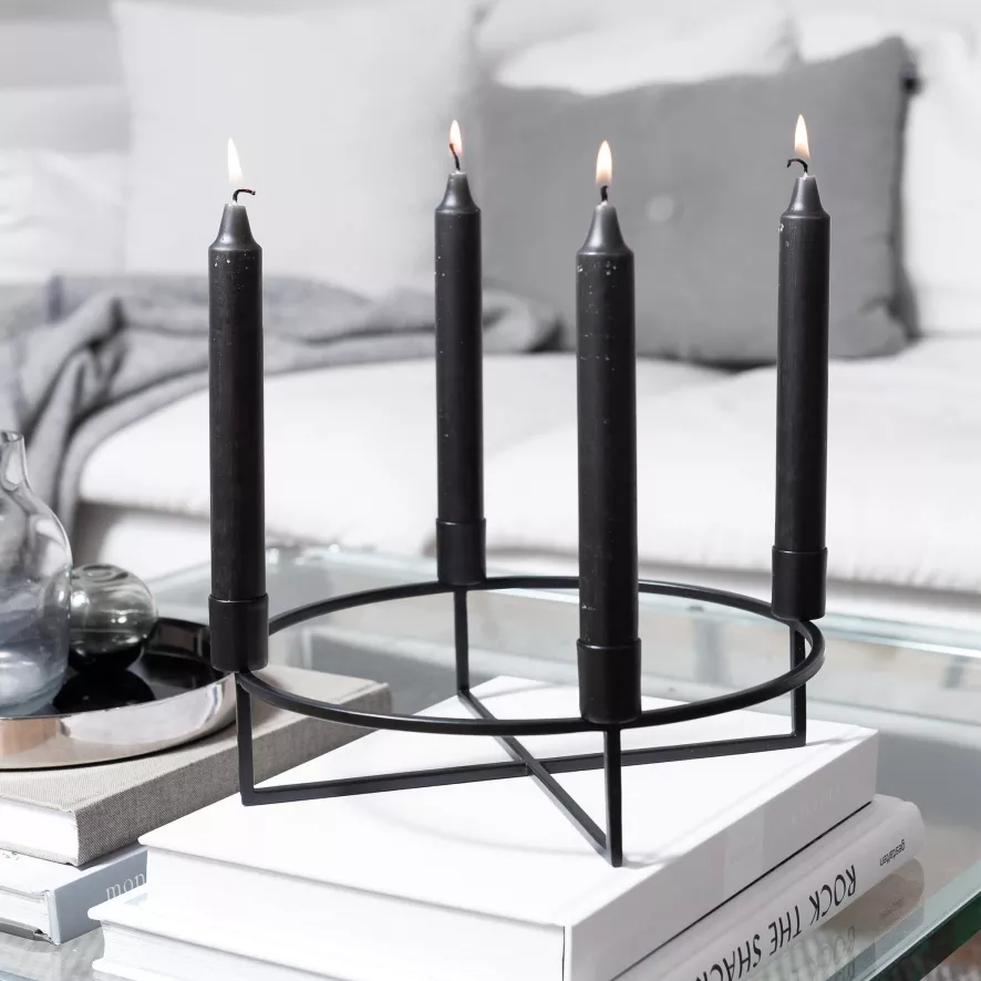 De 4flames kandelaar rond van Yunic heeft een diameter van 28 centimeter en een totale hoogte van 9,5 centimeter. De kandelaar is gemaakt van hoogwaardig staal dat met een matzwarte poedercoat behandeld is. Deze kandelaar biedt plek voor vier standaard kaarsen met een diameter van 22 millimeter. De 4flames kandelaar van Yunic heeft een gewicht van 465 gram en is ook in een vierkante variant verkrijgbaar.