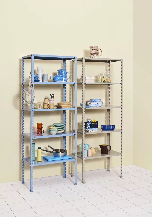De Shelving Unit van HAY is een stellingkast met een breedte van 75 centimeter, een diepte van 43 centimeter en een hoogte van 200 centimeter. De Shelving Unit is gemaakt van gepoedercoat staal en is verkrijgbaar in de kleuren Burgundy, Dusty Blue, Dark Green en Light Grey.