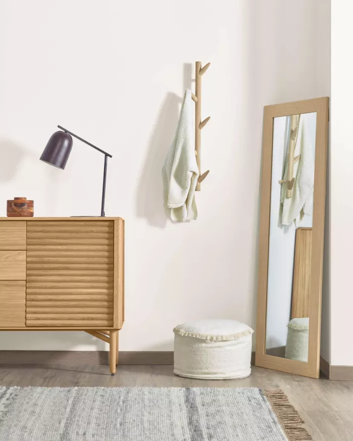 Het Lenon dressoir 200×86 van Kave Home heeft een breedte van 200 centimeter, een diepte van 45 centimeter en een hoogte van 86 centimeter. Het dressoir is gemaakt van FSC-gecertificeerd eikenhout en is afgewerkt met een transparante lak. De poten van dit dressoir zijn voorzien van plastic vloerbeschermers. Het dressoir is voorzien van 3 lades en 3 deuren met daarachter 4 opbergvakken. De deuren en lades open en sluiten met behulp van een push-to-open-systeem. De planken hebben ieder een maximum draaggewicht van 20 kilogram en de lades hebben een maximum draaggewicht van 8 kilogram. Het dressoir heeft een gewicht van 73,5 kilogram en een maximum draaggewicht van 80 kilogram. Het Lenon dressoir 200×86 van Kave Home is alleen geschikt voor gebruik binnenshuis en komt uit de gelijknamige Lenon collectie van Kave Home.
