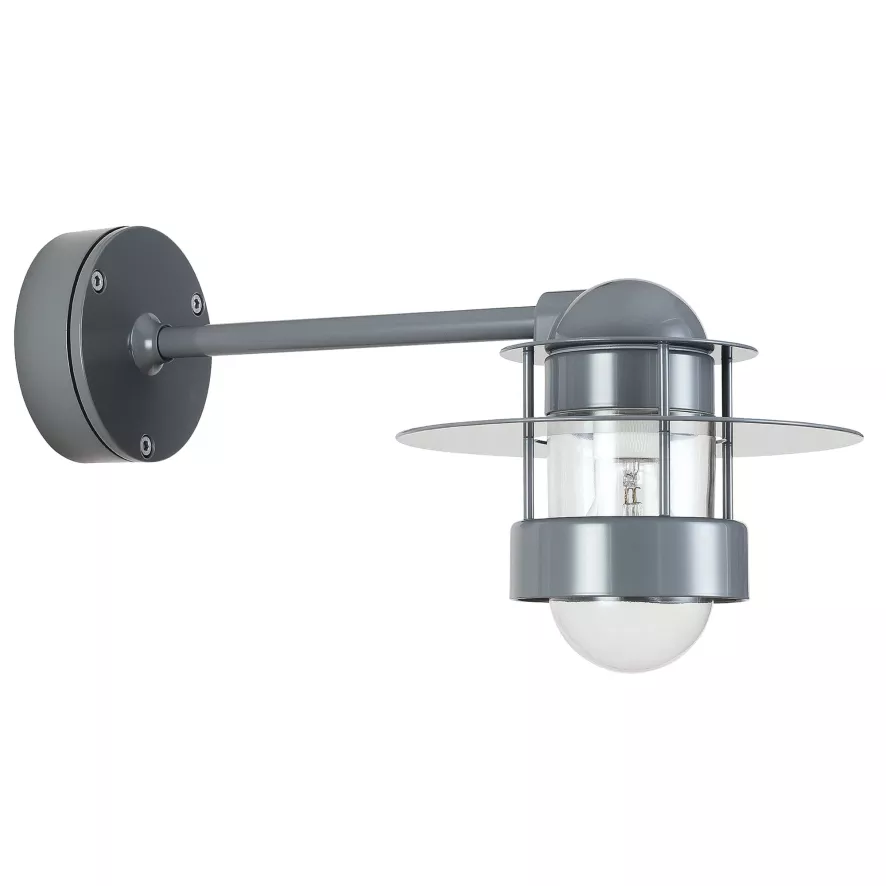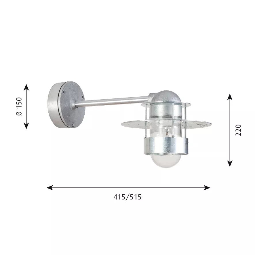 Albertslund buitenlamp lange arm van Louis Poulsen heeft een diepte van 51,5 centimeter en een hoogte van 22 centimeter. De wandbevestiging heeft een diameter van 15 centimeter. Deze lamp komt in 3 kleuren: gegalvaniseerd staal, of een grijze of witte poedercoat. De diffuser is van helder glas. Er zit een gewone E27 fitting in voor een lamp van maximaal 100 Watt. Deze lamp heeft een IP-beschermingsgraad van 44.