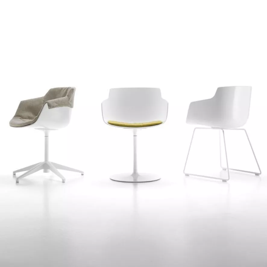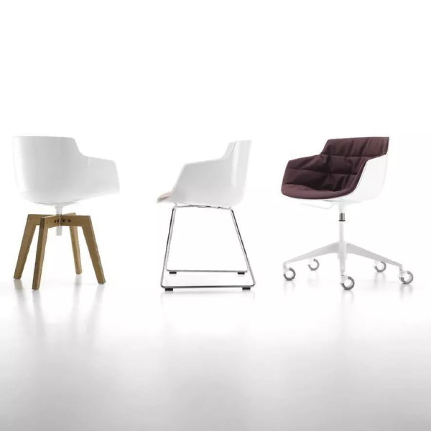 De MDF Italia Flow Slim Armchair stoel wit met slede onderstel is ontworpen door Jean Marie Massaud.
