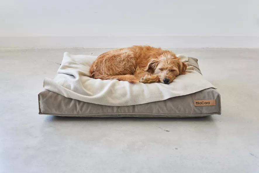 Het Velluto hondenkussen small van MiaCara heeft een lengte van 80 centimeter, een breedte van 60 centimeter en een hoogte van 10 centimeter. Dit hondenkussen heeft een afneembare en wasbare hoes die voor 60% uit katoen en voor 40% uit polyester bestaat. Deze hoes mag op 40 graden Celsius in de wasmachine gewassen of gestoomd worden. Na het reinigen dient de hoes aan de lucht gedroogd te worden. De hoes mag niet gestreken worden. Het kussen heeft een binnen kussen van katoen en is gevuld met stabiel, duurzaam en hypoallergeen polyurethaan. Het binnen kussen mag met een mild wasmiddel tot 60 graden Celsius in de wasmachine gewassen worden. Na het reinigen dient het kussen goed gecentrifugeerd en daarna aan de lucht gedroogd worden. Het mis mogelijk het binnen kussen tot een temperatuur van 60 graden Celsius in de droogtrommel te drogen. Let hierbij wel op dat het niet te droog wordt. Dit hondenkussen is geschikt voor Jack Russels, Maltezers, Yorkshire Terriërs, Buldoggen, Dashonden, Mopshonden, Poedels en andere kleine hondenrassen. Het Velluto hondenkussen small van MiaCara is in verschillende kleuren en formaten verkrijgbaar.