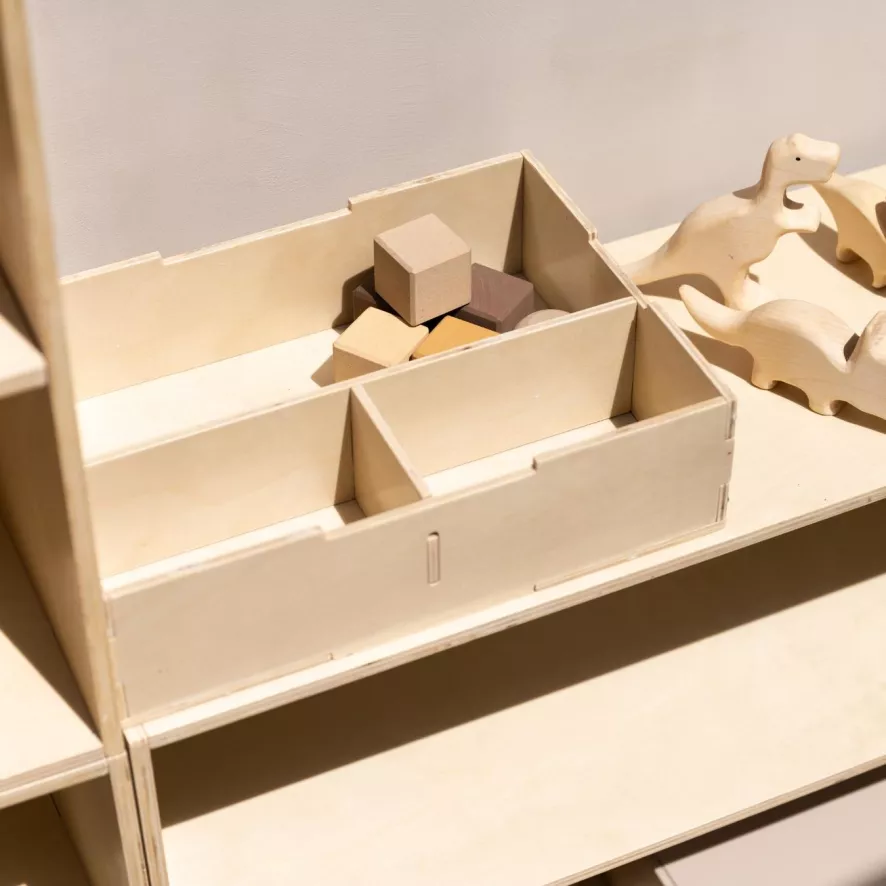 De Kiddo Tool box opberger van Nofred is 24 centimeter breed, 33,5 centimeter diep en 9 centimeter hoog. De opberger is gemaakt van berkenhout en is afgewerkt met niet-giftige verf. De box is verkrijgbaar in verschillende kleuren. De opberger past perfect in de Kiddo wandkast.