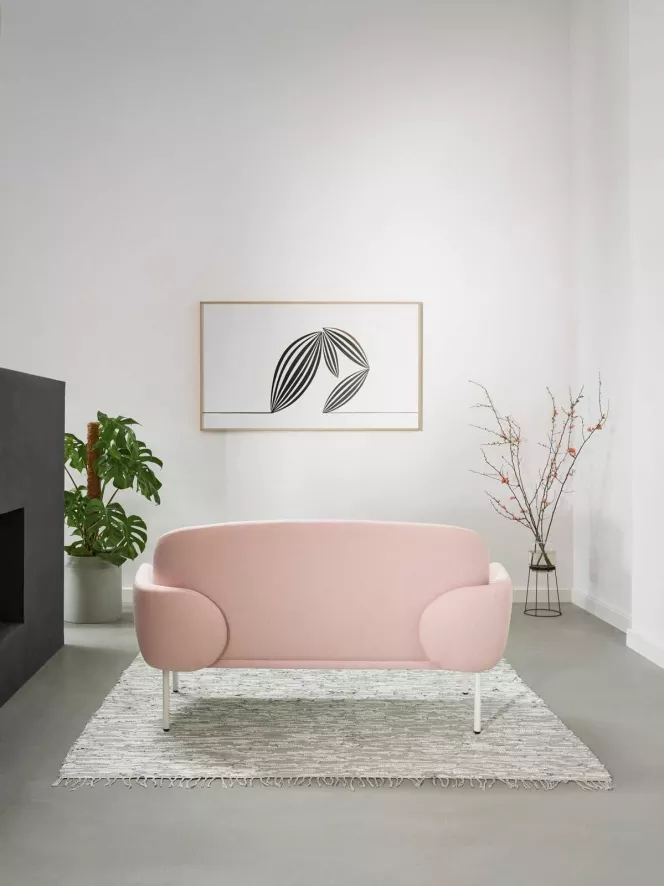 De bank is 148 centimeter breed, 77 centimeter diep en 78 centimeter hoog. De sofa heeft een stalen basis en de zitting heeft een stoffen bekleding. De bank is in meerdere kleuren verkrijgbaar.