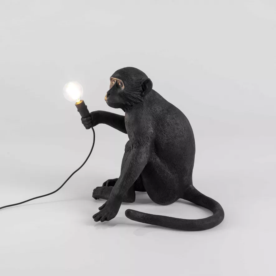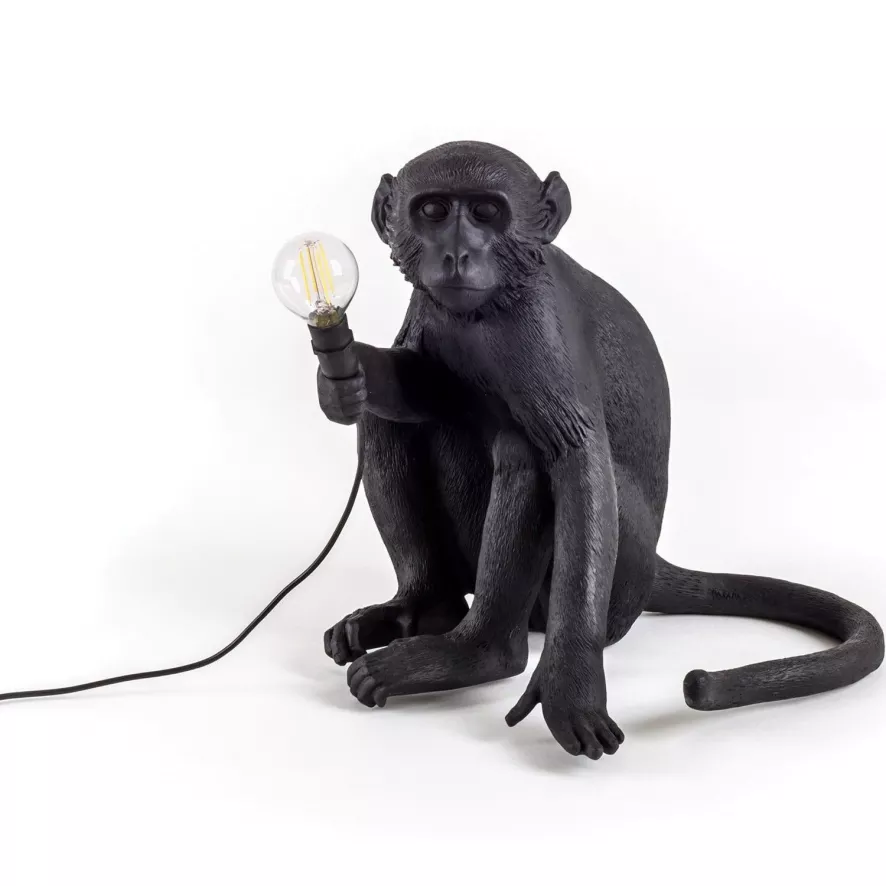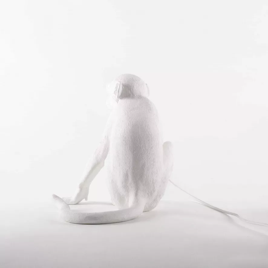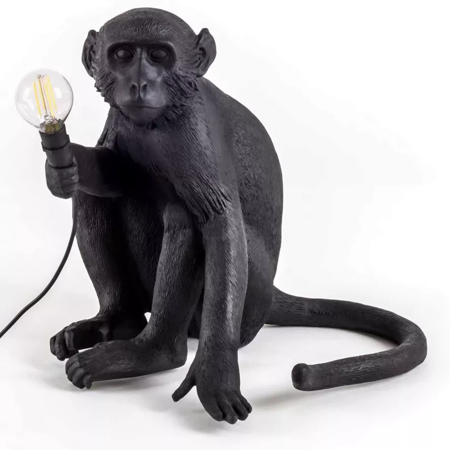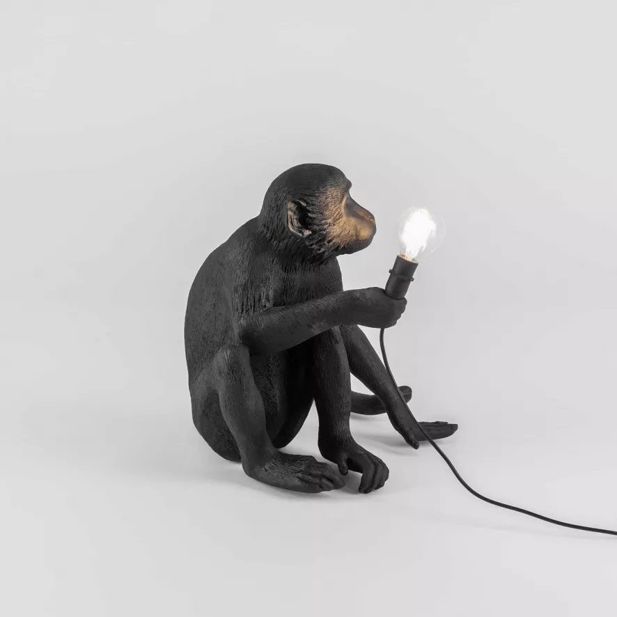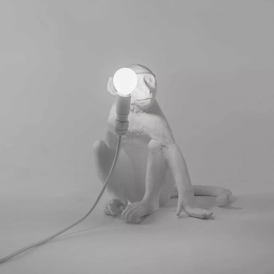 De Seletti Monkey Sitting tafellamp buiten is ontworpen door Marcantonio Raimondi Malerba.