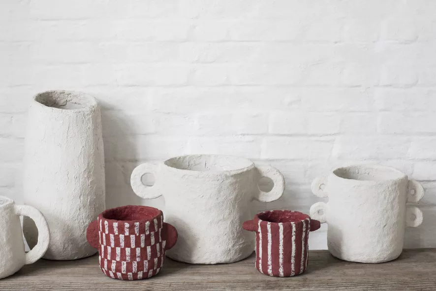 De Earth by Marie Michielssen opberger 20×14 van Serax heeft een rood met wit patroon. De mand heeft een lengte van 20 centimeter, een breedte van 14 centimeter, een hoogte van 14 centimeter en een gewicht van 0,76 kilogram. De opberger is gemaakt van papier-maché.