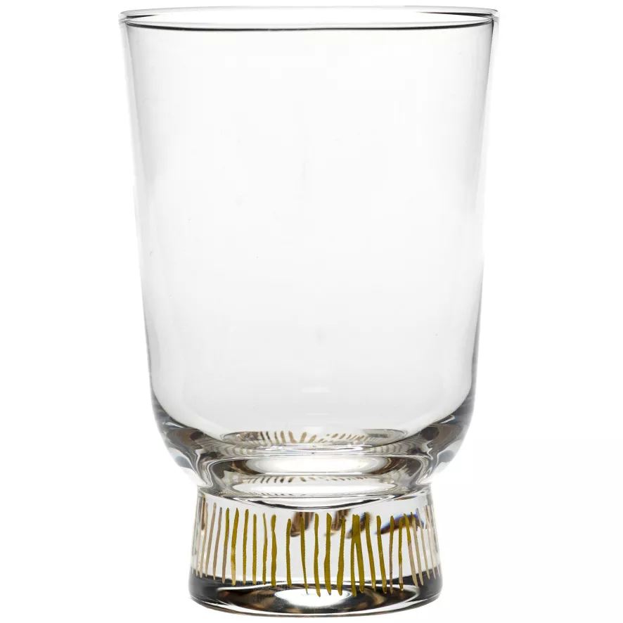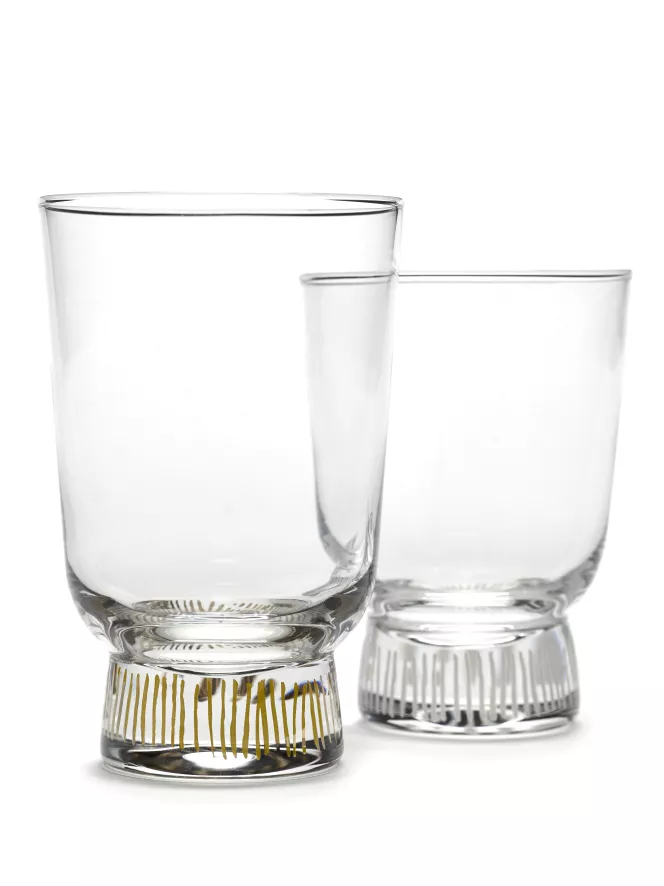 De Feast by Ottolenghi glazen 33cl van Serax zijn ontworpen door Ottolenghi, deze prachtige collectie heeft de Elle Deco international design awards 2022 gewonnen. De glazen worden verkocht per 4 stuks. Elk glas heeft een diameter van 7,7 centimeter, een hoogte van 12 centimeter, een gewicht van 0,33 kilogram en een inhoud van 33 centiliter. De glazen zijn gemaakt van handgemaakt mond geblazen glas. In de bodem zijn gouden strepen verwerkt. De glazen moeten met de hand worden schoongemaakt.