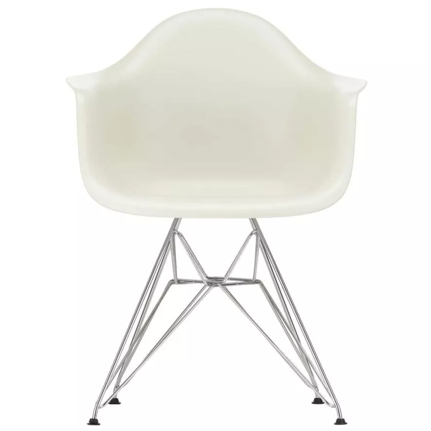 De Eames DAR stoel verchroomd onderstel van Vitra is een absolute bestseller. Uiteraard is de door Ray en Charles Eames ontworpen stoel er in vele kleuren. De zitting is gemaakt van kunststof en is ook te bekleden in één van de 27 kleuren in de stofsoort Hopsak. De Eames DAR stoel heeft (als nieuwe afmetingen) een breedte van 63 centimeter, een diepte van 59 centimeter en een hoogte van 83 centimeter. De zithoogte van de stoel is 43 centimeter. In plaats van een verchroomd onderstel is er in dezelfde serie ook een DAR stoel met zwart gepoedercoat onderstel. Door de poedercoating is die variant ook geschikt als tuinstoel.