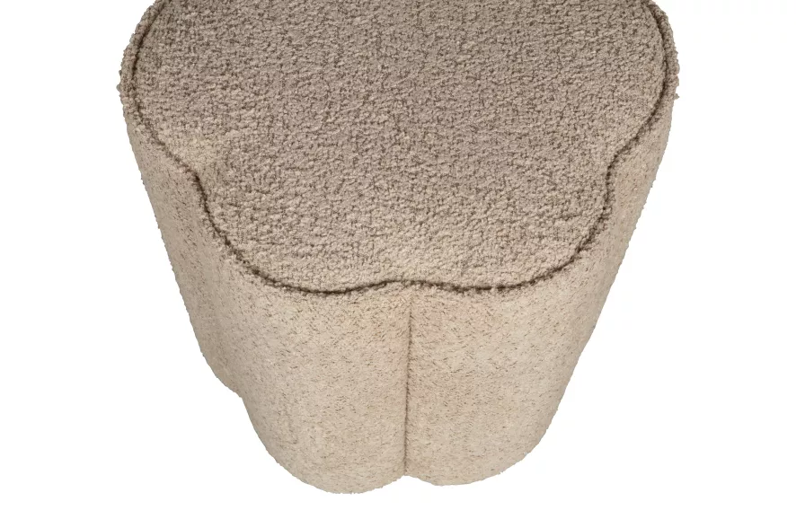 De Ollie Poef van Woood heeft een bloemachtige vorm. De poef heeft een diameter van 39 centimeter en een hoogte van 45 centimeter. De hocker is voorzien van vloerbeschermers aan de onderzijde. De poef is bekleed met zachte bouclé stof gemaakt van 100% polyester. Wij adviseren eventuele vlekken direct droog te deppen met een schone doek of tissue. De meeste vloeistoffen zijn te verwijderen met lauw water. Maak een ronddraaiende beweging van buiten naar binnen. De Ollie poef is verkrijgbaar in verschillende kleuren.